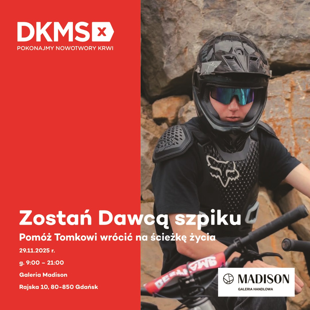 Tomek ma 15 lat i pochodzi z Gdańska. Kocha jazdę na rowerze – dla niego to wolność, pasja i radość życia. Dziś jednak zamiast ścieżek rowerowych widzi szpitalne korytarze. Zdiagnozowano u niego ostrą białaczkę szpikową, a jedyną szansą na powrót do zdrowia jest przeszczepienie szpiku.