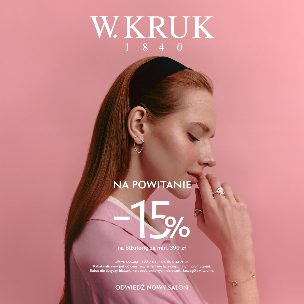 Oferta obowiązuje od 2.04.2026 do 4.04.2026. Rabat naliczany jest od ceny regularnej i nie łączy się z innymi promocjami. Rabat nie dotyczy blaszek, kart podarunkowych, obrączek. Szczegóły w salonie.