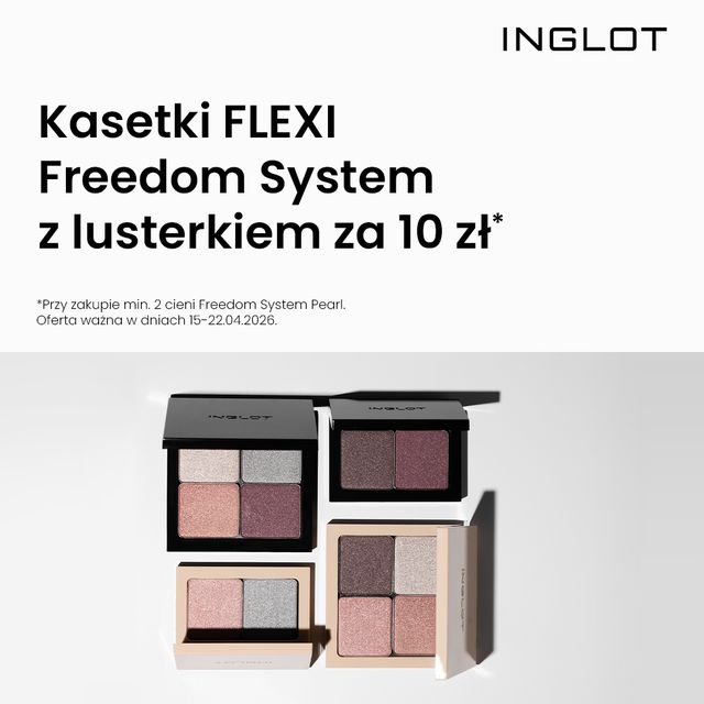 Przy zakupie min. 2 dowolnych cieni do powiek Freedom System Pearl - kasetkę FLEXI Freedom System z lusterkiem w wersji beżowej lub czarnej, na 2 lub 4 wkłady - kupisz za jedyne 10 zł